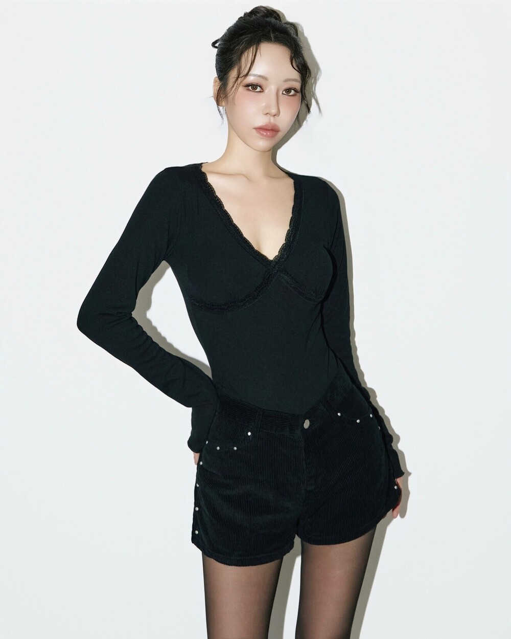 가슴 부분의 레이스 포인트가 시선을 사로잡으며,