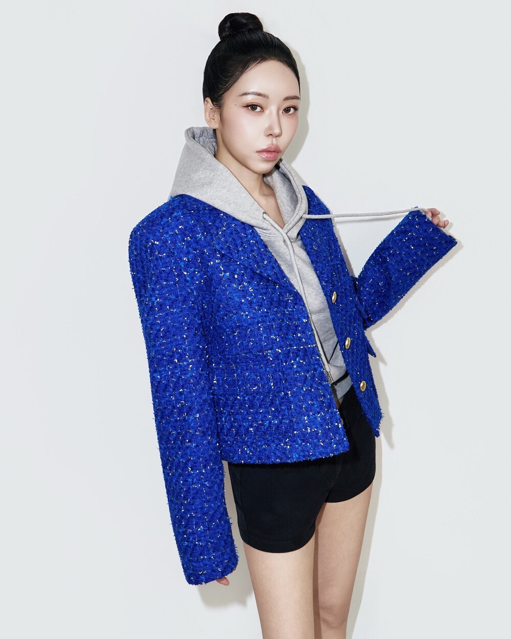 후디 위에 자켓을 가볍게 걸치고