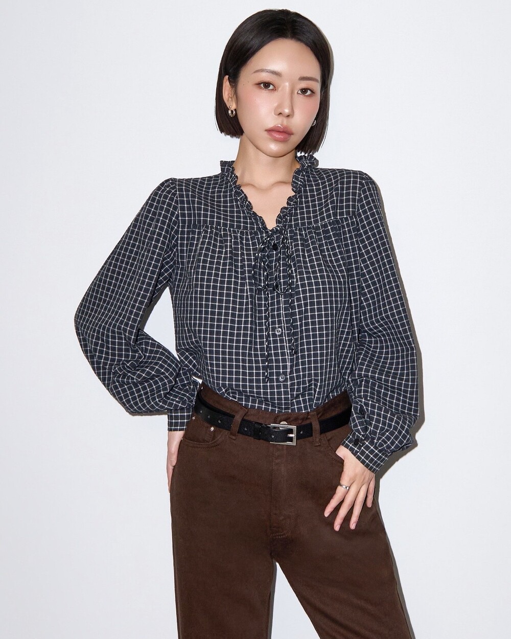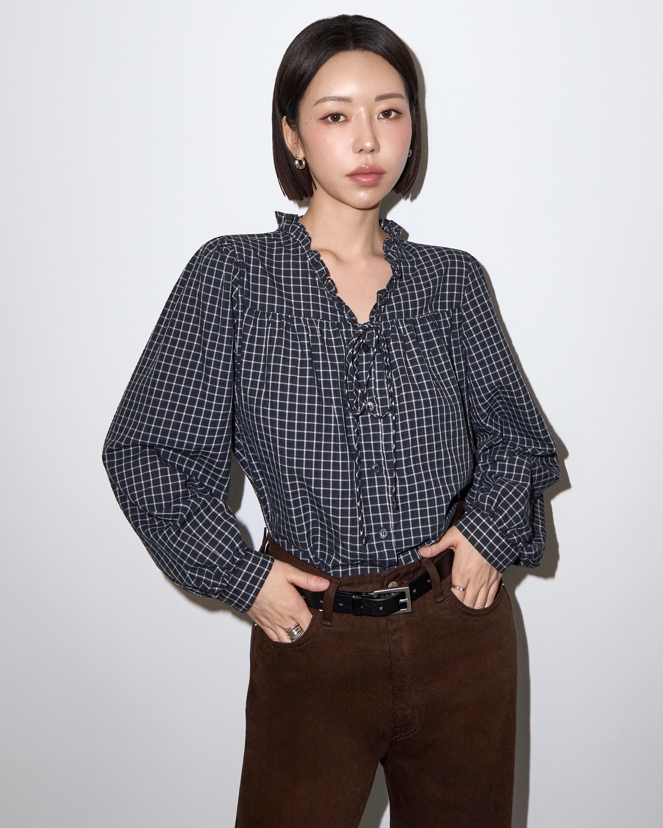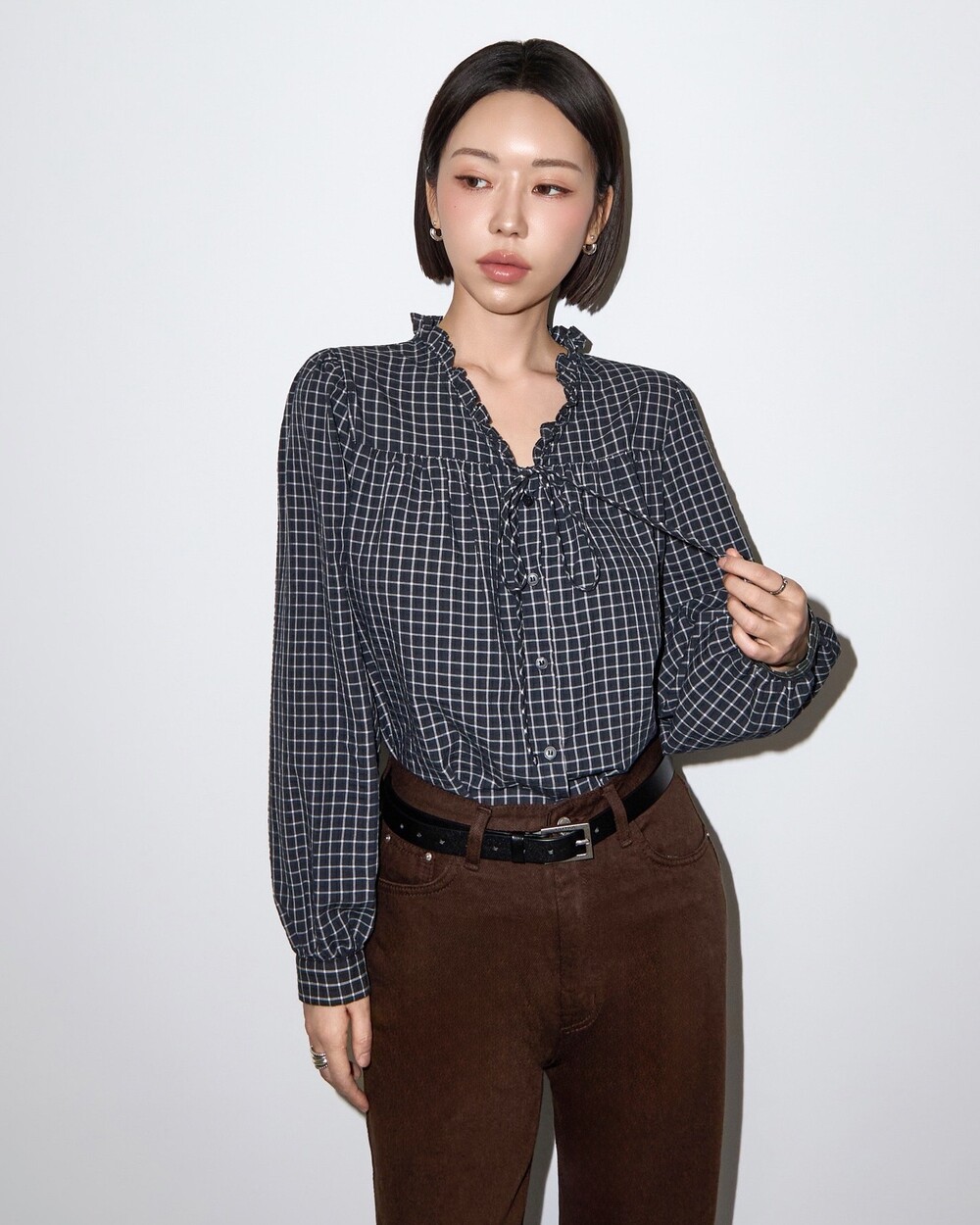 런던 체크 프릴 블라우스