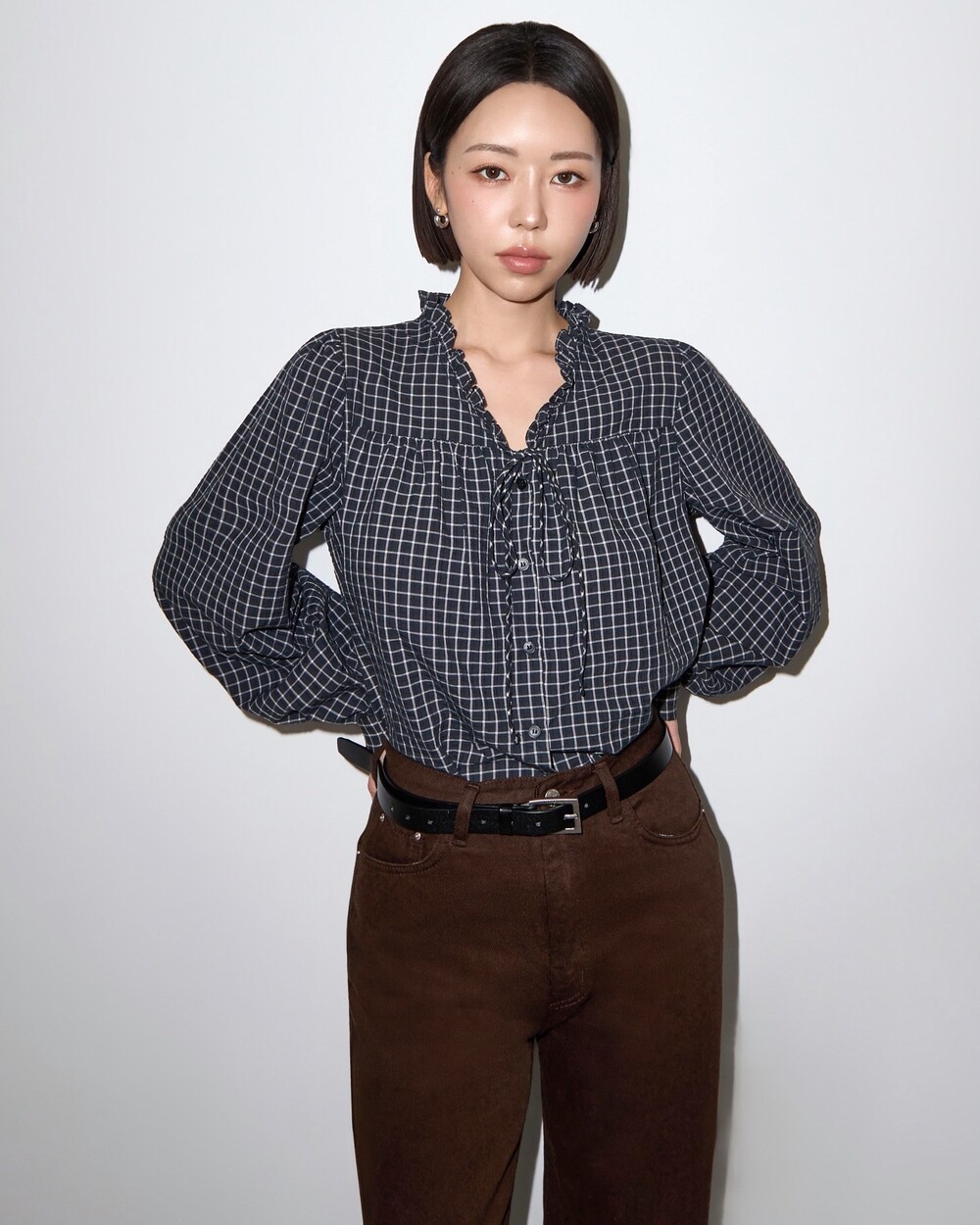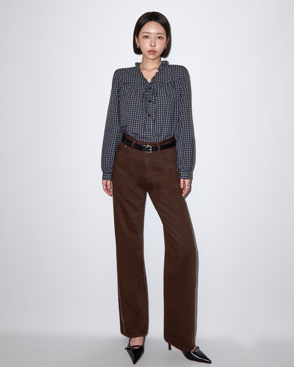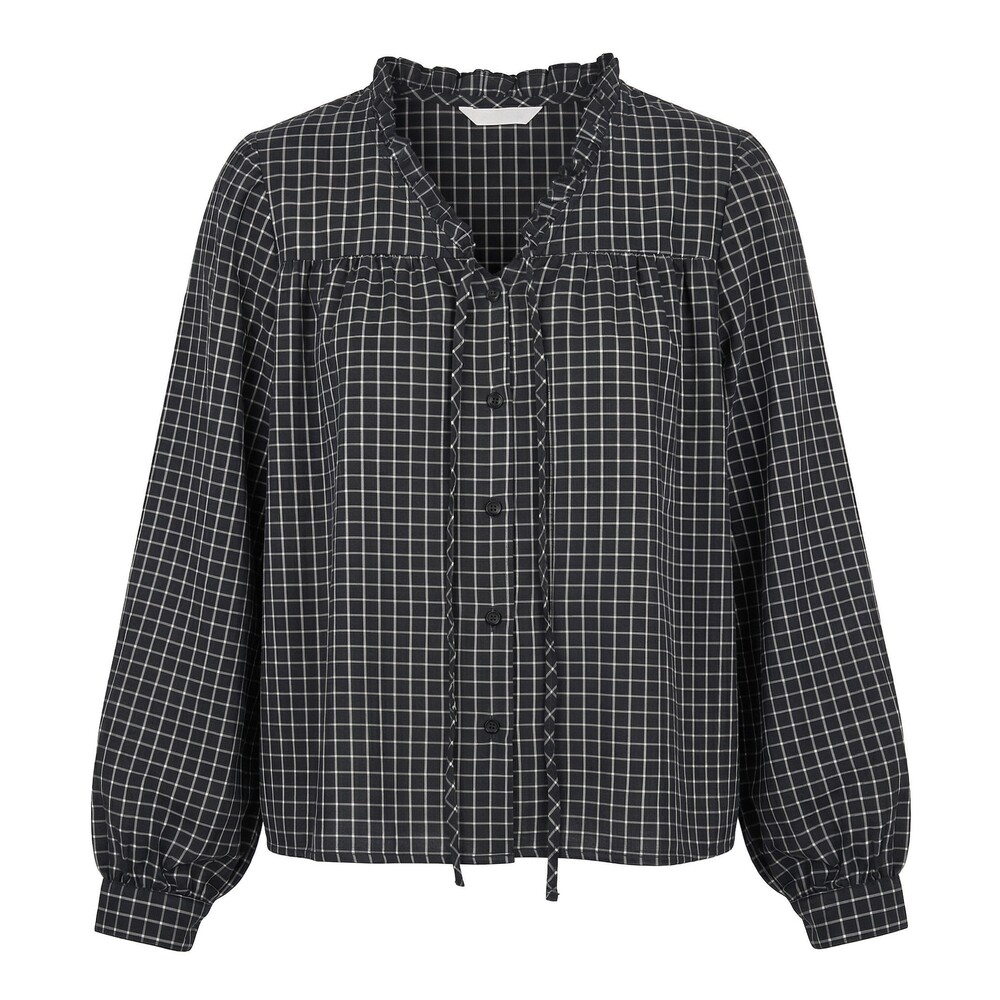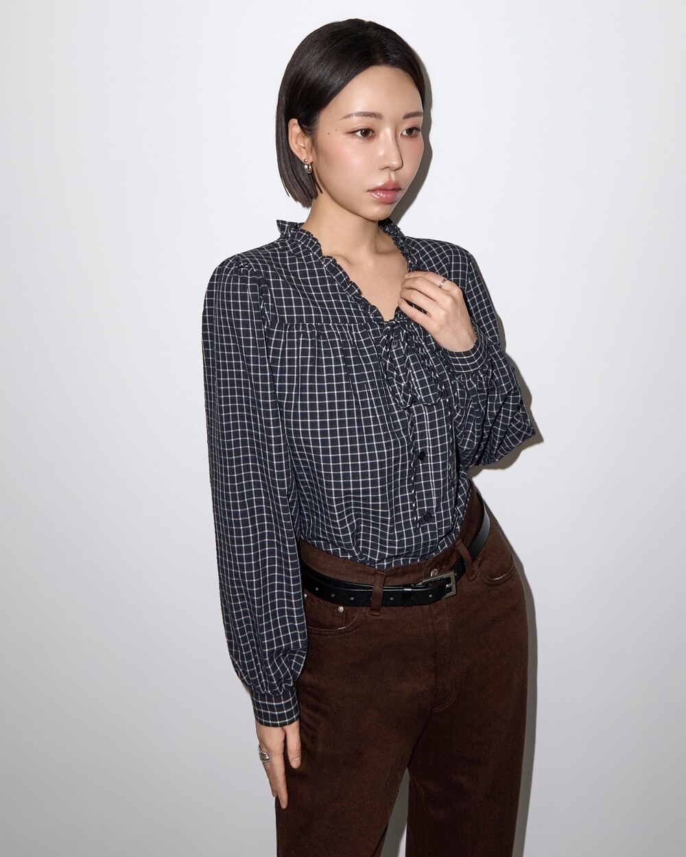 런던 체크 프릴 블라우스