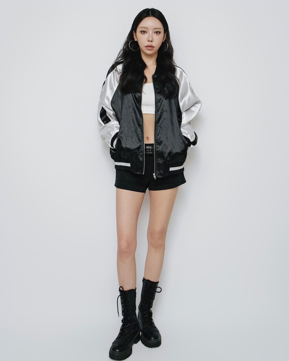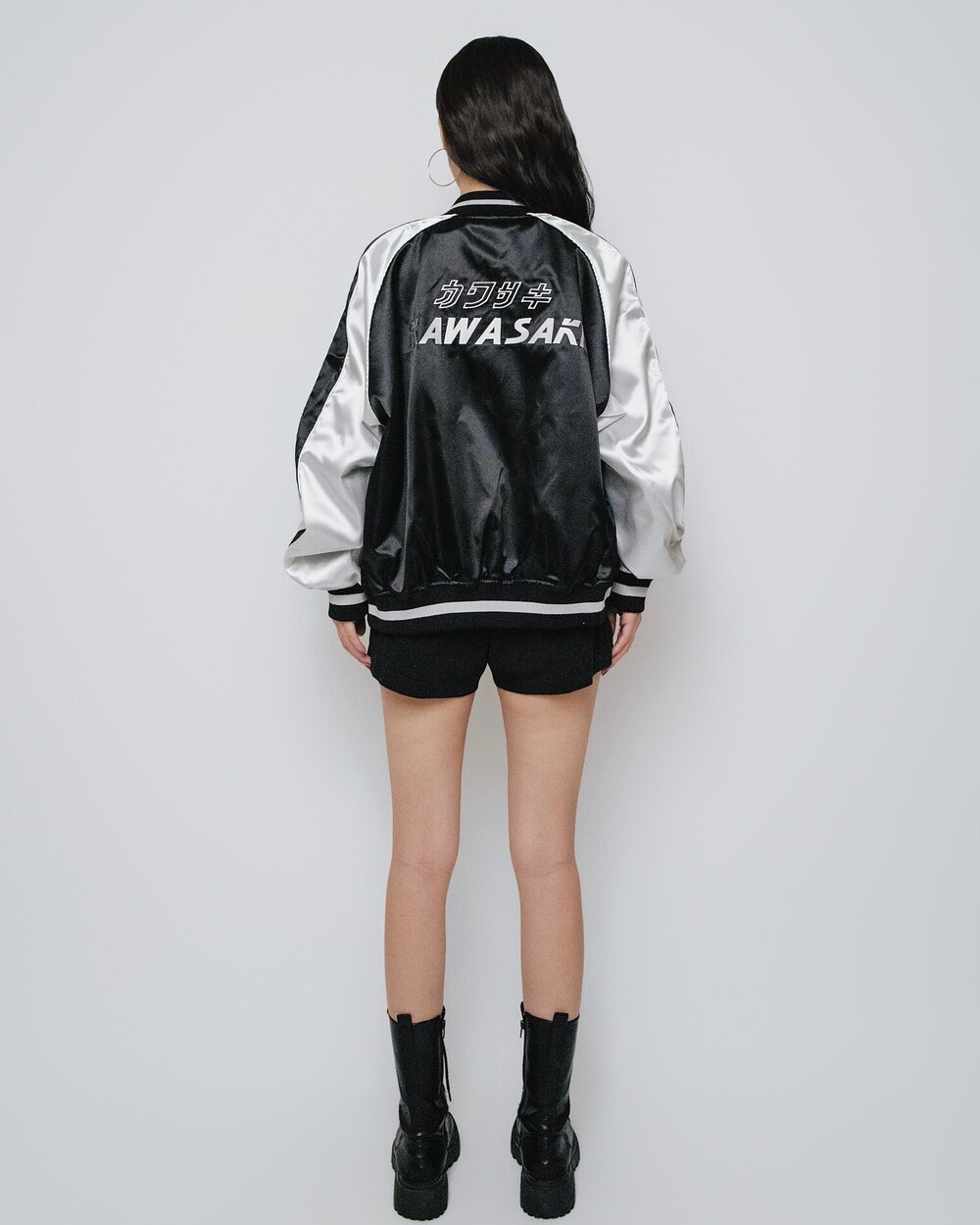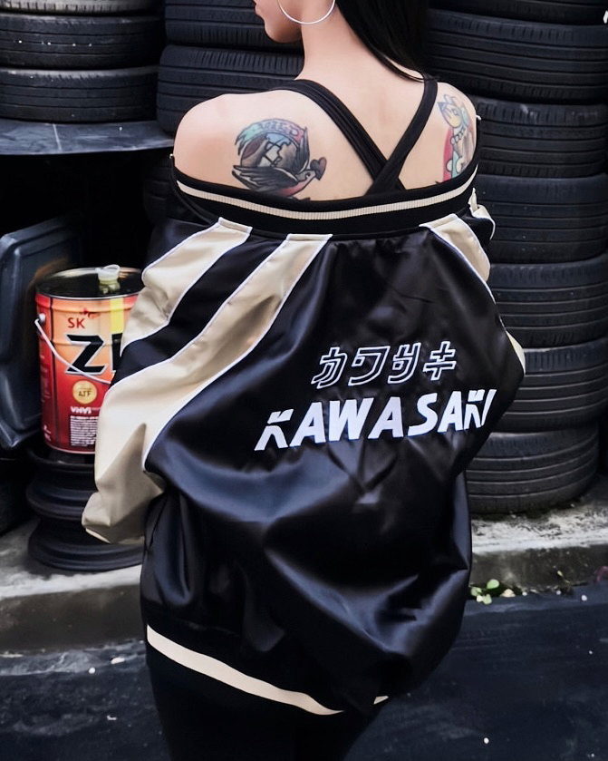 오버핏 가와사키 새틴 스카잔